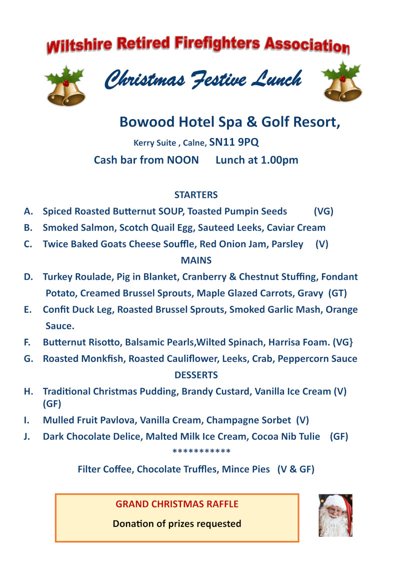 The WRFA held a Christmas festive lunch on Monday 16th December at Bowood Hotel Spa & Golf Resort, near Calne. The Kerry Suite provided an ideal and very pleasant venue. The delicious food served was very much enjoyed by those attending. A Raffle was held that raised £140.00 for association funds.